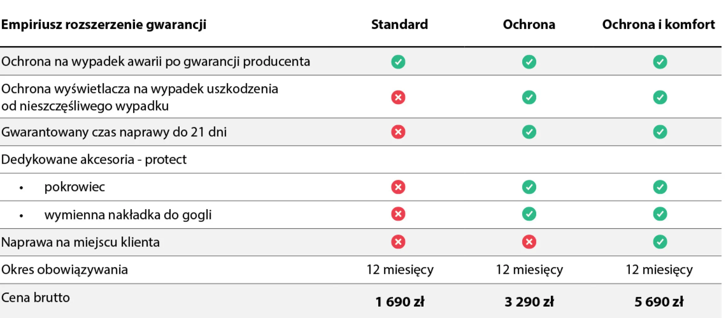Porównanie pakietów gwarancyjnych