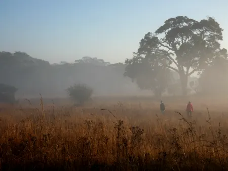 Nie będziemy ukrywać, że nasza ekipa podzielona na dwa zespoły, podchodzący i fotografujący, poniosła sromotne fiasko. A jak do tego doszło? Przede wszystkim byliśmy za głośno. W buszu trzeba zamilknąć albo nie zobaczy się żadnego zwierzaka. To była dla nas lekcja. Dlatego uczyliśmy się porozumiewać za pomocą gestów i sygnałów dźwiękowych, które są integralną częścią buszu. Podstawowe zasady? Nie rozmawiamy, nie szepczemy, nie wymachujemy rękoma. Szczerze mówiąc… to całkiem trudne zadanie, gdy człowiek przedziera się o poranku przez trawę mokrą od rosy i wznoszącej się mgły. Nie mieliśmy jednak wyboru: albo nauczymy się komunikować w trawie pozawerbalnie, albo nici z naszego białego polowania.