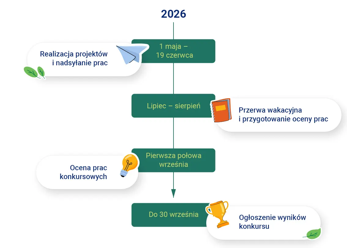 Udział w konkursie to nie tylko satysfakcja z realizacji projektu, ale także realne, wartościowe nagrody dla klas i szkół. Doceniamy kreatywność, współpracę i odwagę w myśleniu o energii przyszłości – dlatego na zwycięzców czekają zestawy edukacyjne, które zostaną z klasą na dłużej i będą wspierać kolejne inspirujące lekcje.