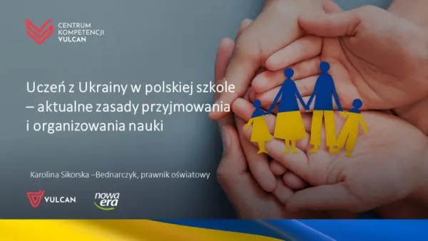 Wraz z firmą Vulcan zapraszamy na spotkanie dyrektorów placówkek oświatowych, do których mogą uczęszczać dzieci i młodzież z Ukrainy w czasie trwania konfliktu zbrojnego. - Kształcenie, wychowanie i opieka nad uczniami z Ukrainy: ułatwienia w kolejnych obszarach