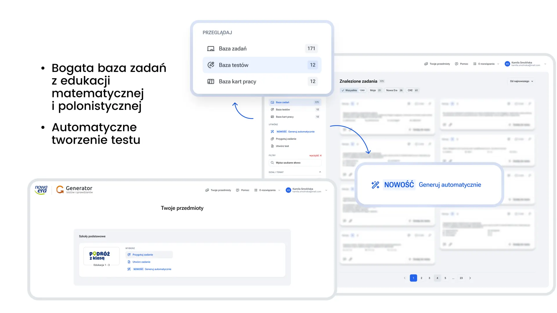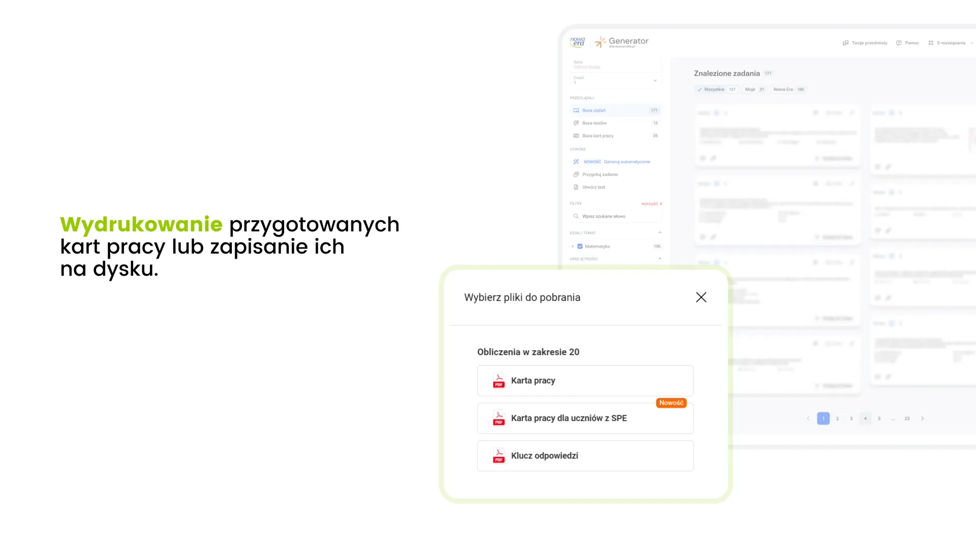 Bogaty bank zadań i przejrzysty system nawigacji umożliwiają szybkie przygotowanie zestawu idealnie dopasowanego do potrzeb uczniów.