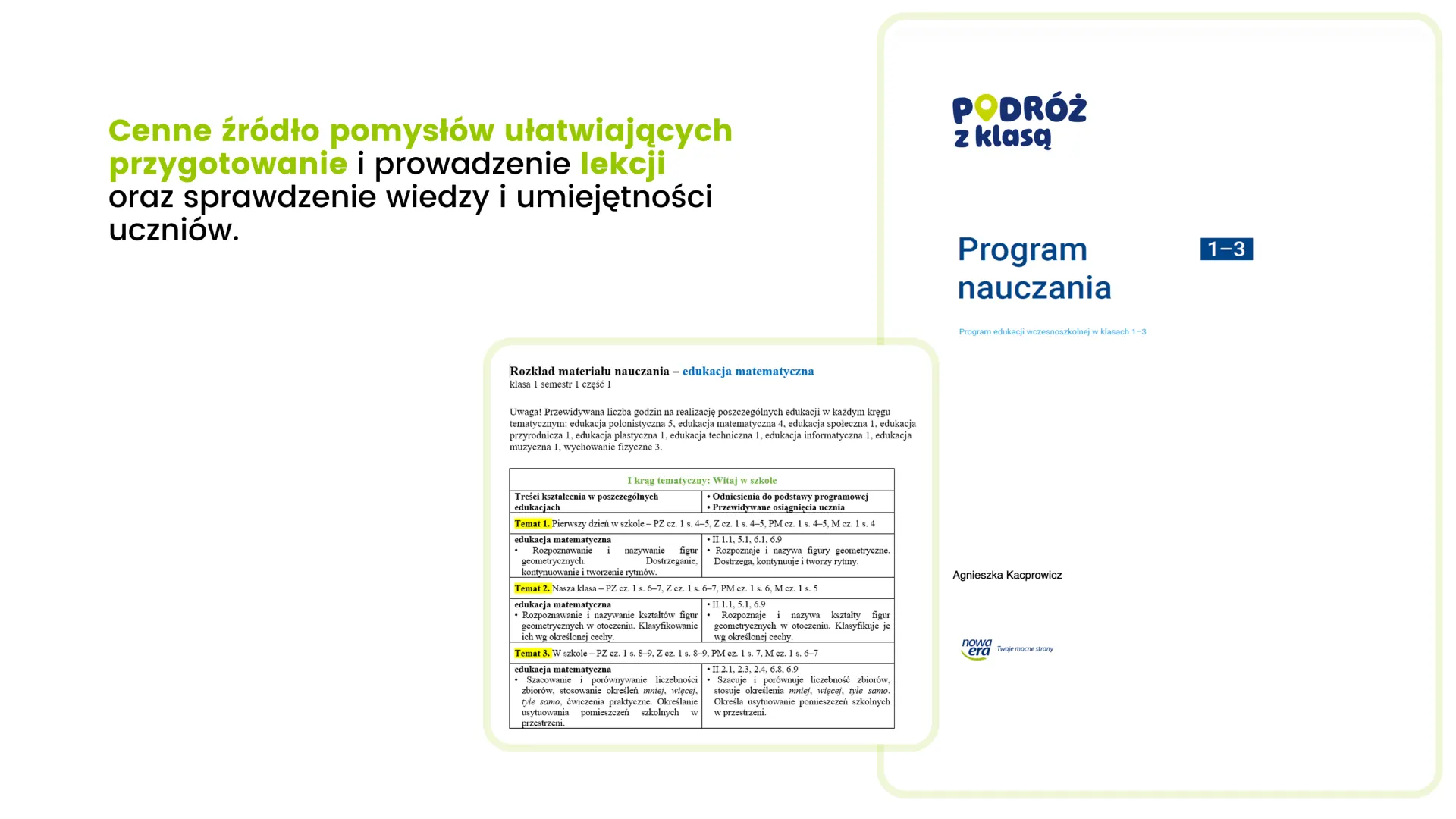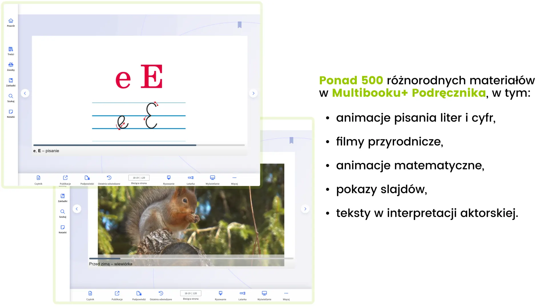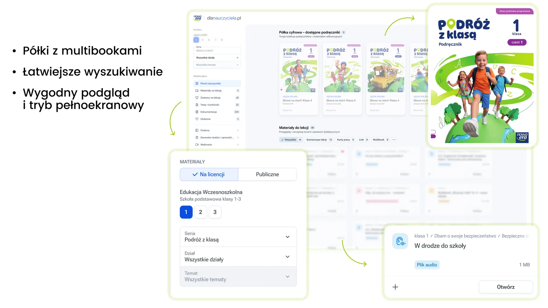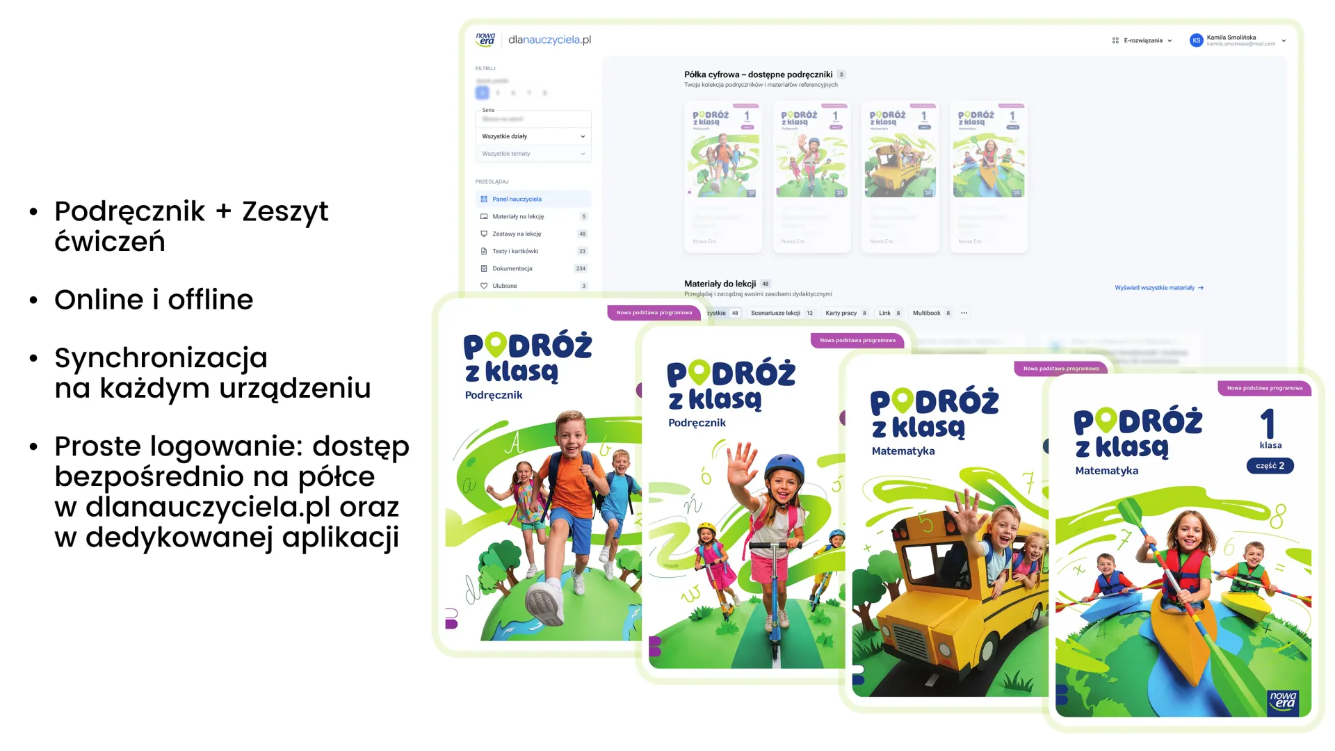 Gromadzi w jednym miejscu materiały z podręczników i zeszytów ćwiczeń, ułatwiając przygotowanie się do lekcji oraz jej prowadzenie. Pomaga uporządkować wiedzę oraz skupić uwagę uczniów. Ożywia lekcje i wspiera zaangażowanie dzieci – sprawia, że uczenie się jest atrakcyjne i efektywne.