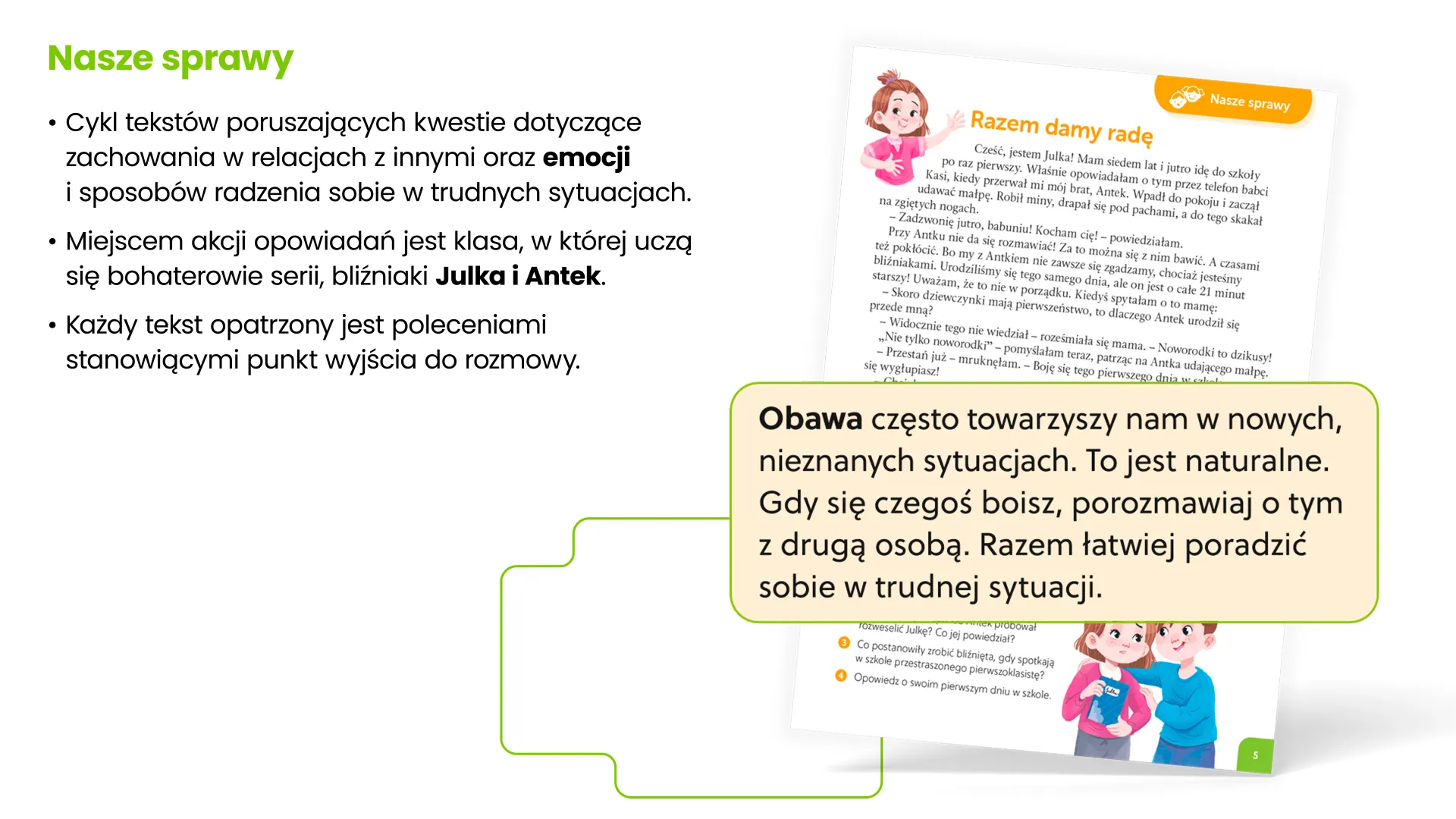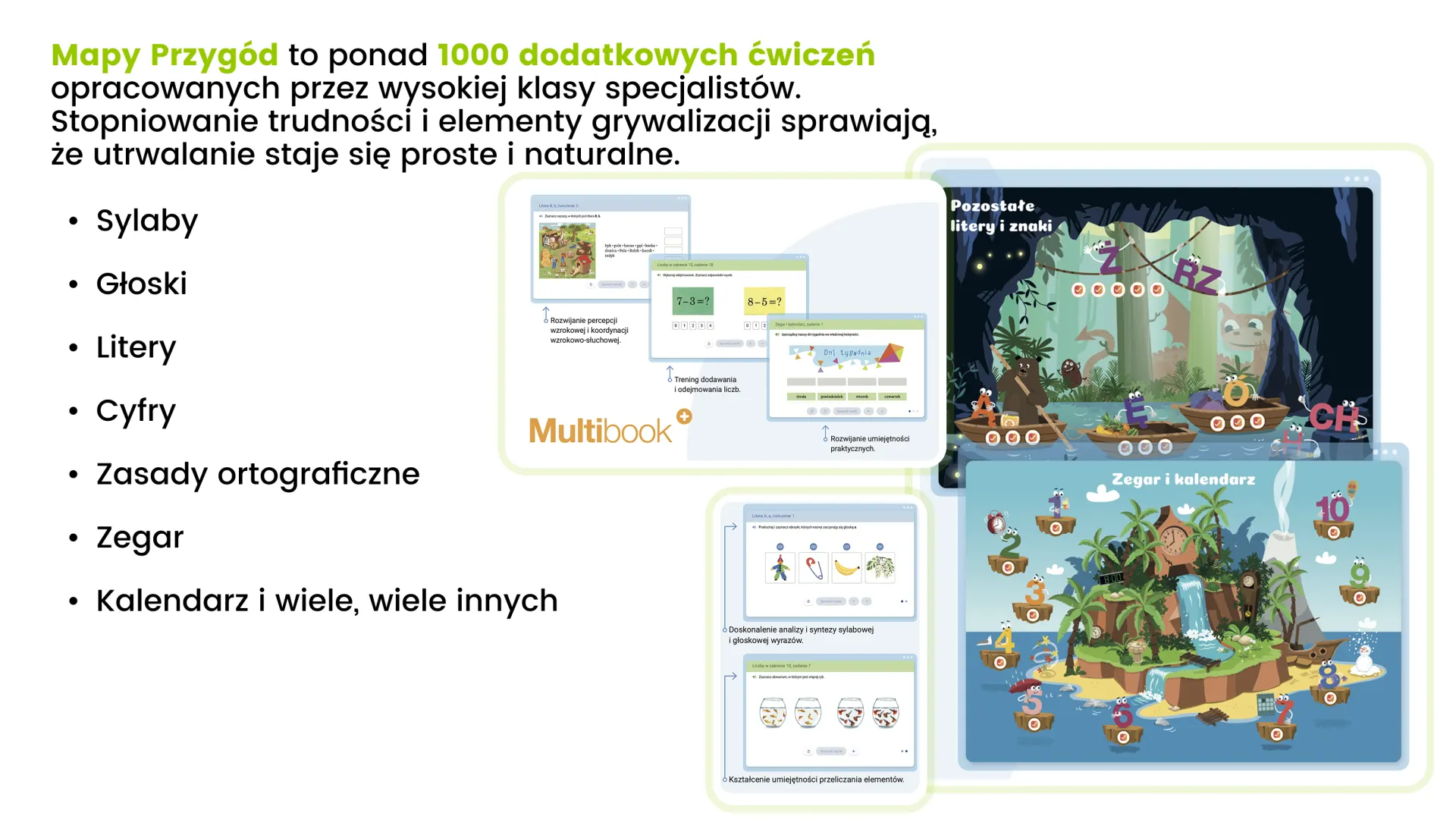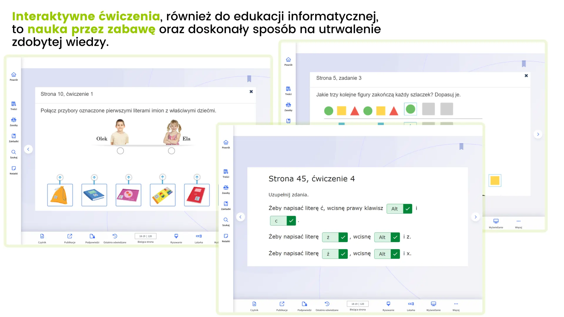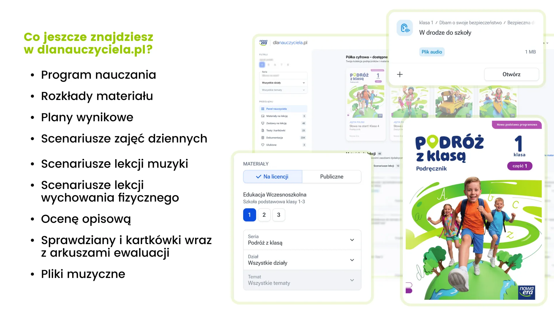 Gromadzi w jednym miejscu materiały z podręczników i zeszytów ćwiczeń, ułatwiając przygotowanie się do lekcji oraz jej prowadzenie. Pomaga uporządkować wiedzę oraz skupić uwagę uczniów. Ożywia lekcje i wspiera zaangażowanie dzieci – sprawia, że uczenie się jest atrakcyjne i efektywne.