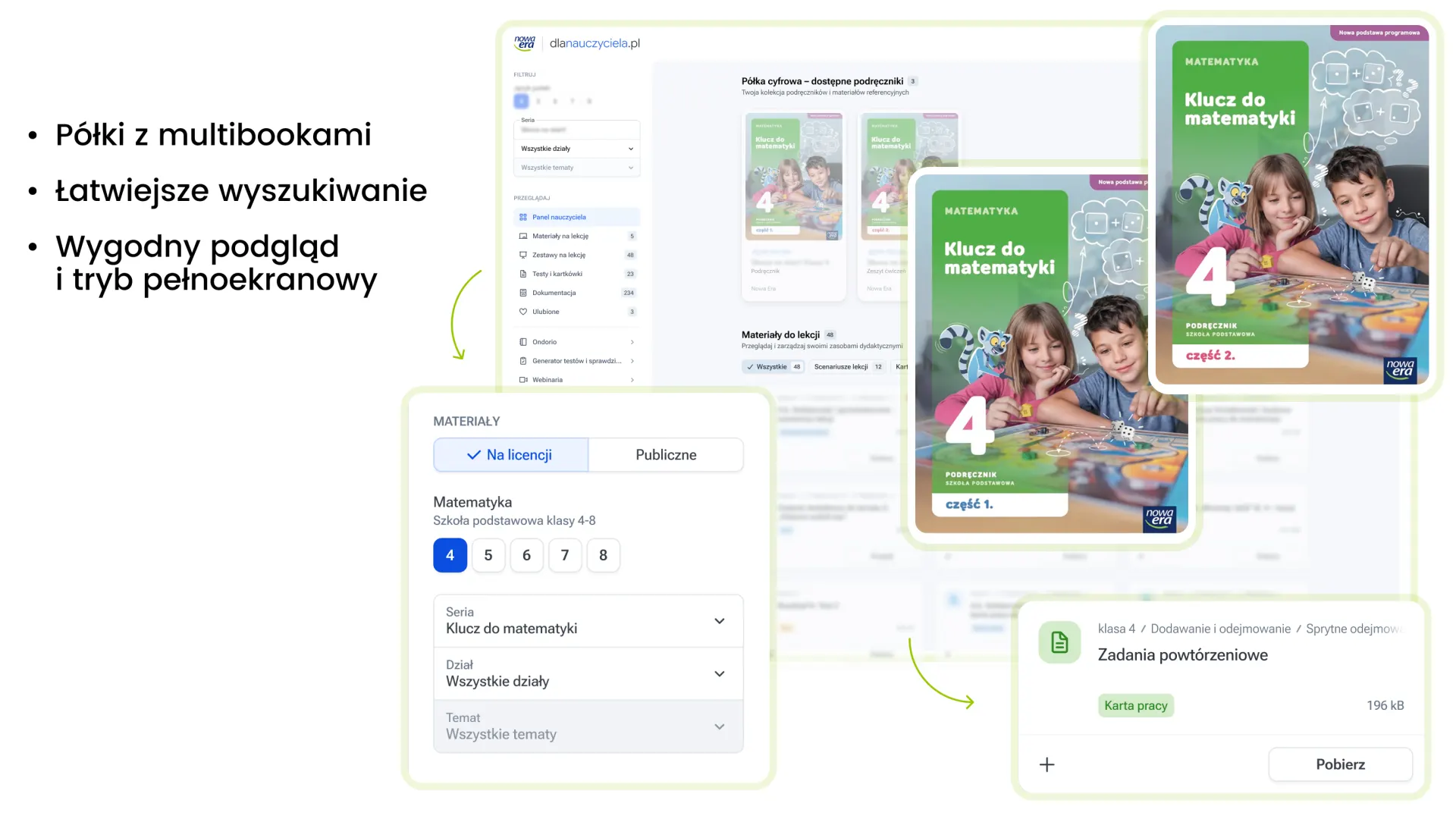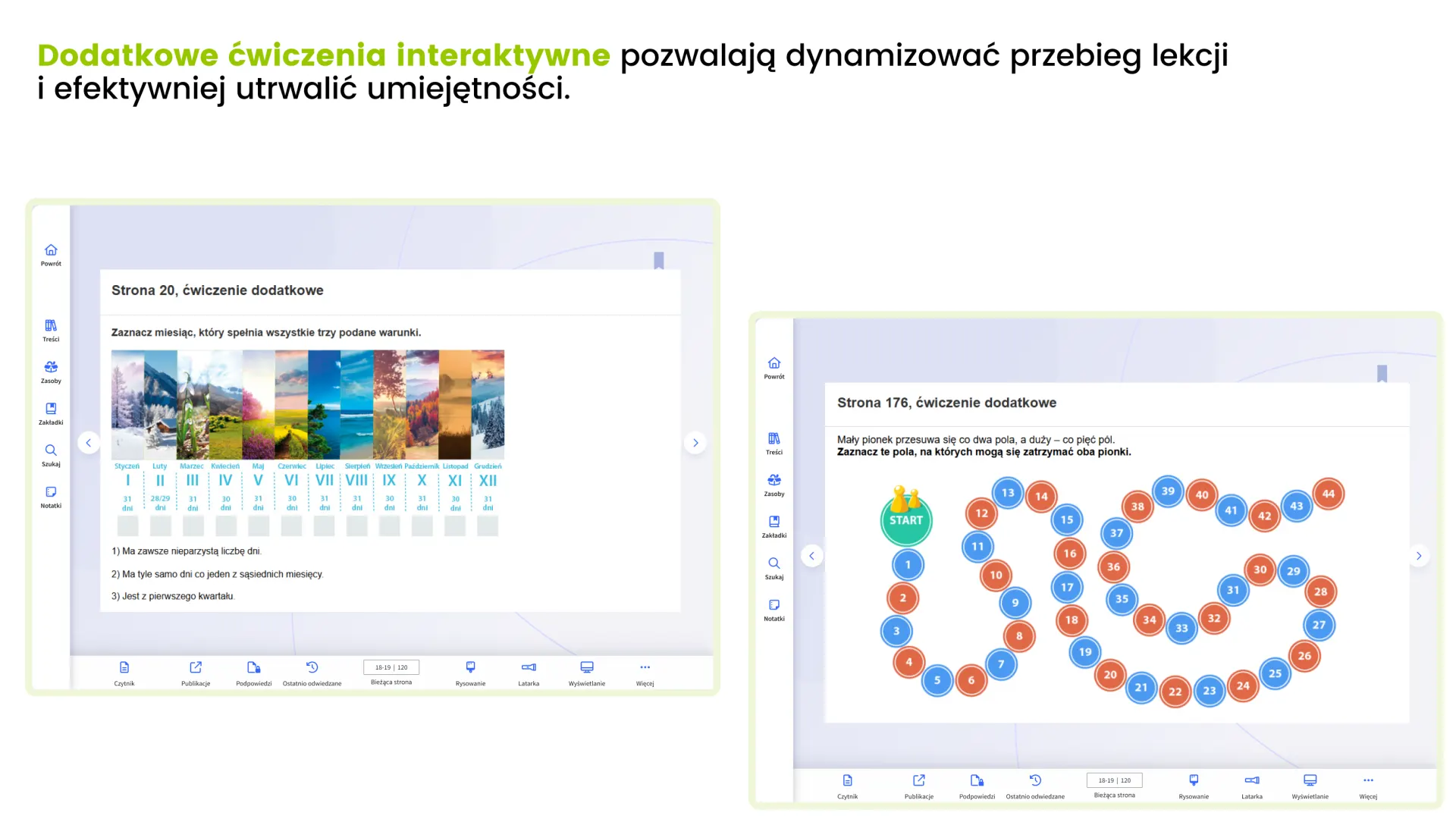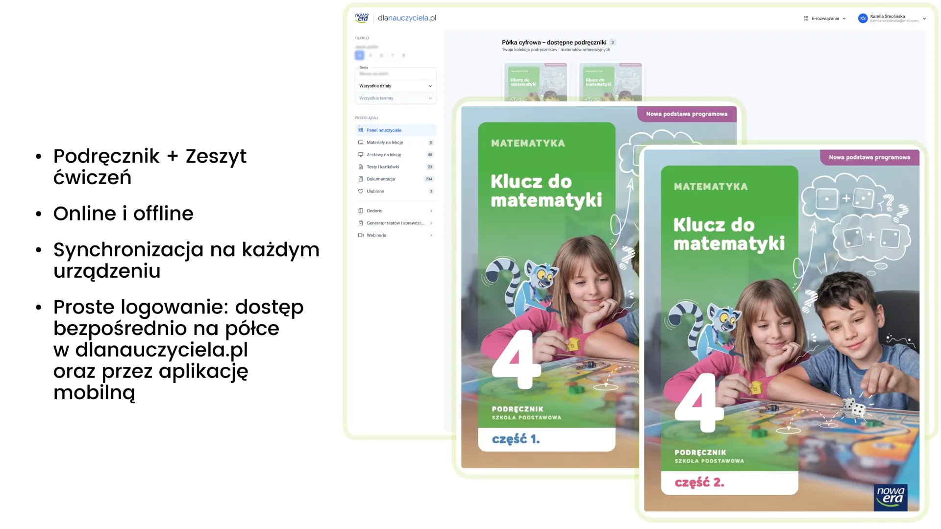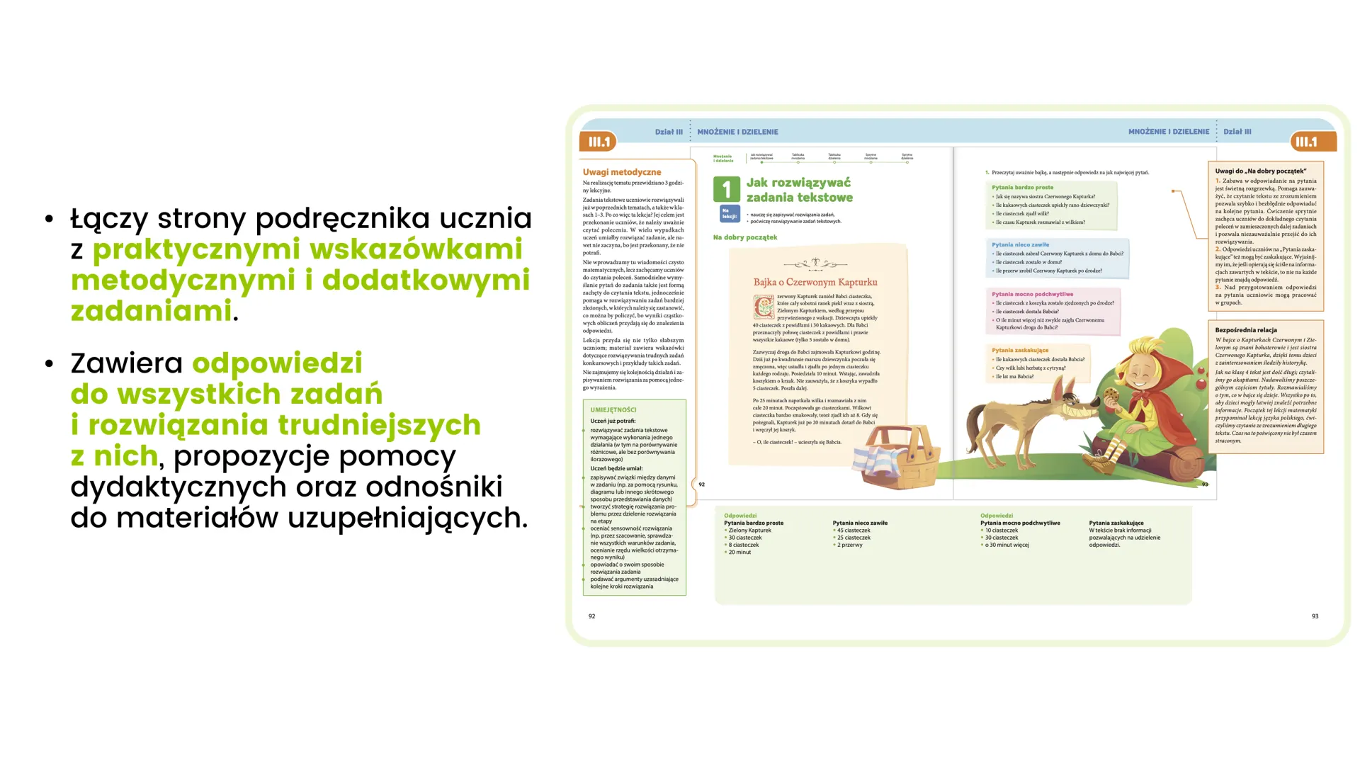 Ciekawe pomysły na początki lekcji angażują uczniów i nauczycieli. Różnorodne formy pracy pomagają utrzymać rytm zajęć i dostarczają nauczycielowi bieżącej informacji o postępach klasy. Przejrzysta szata graficzna i większy format ułatwiają uczniom przejście z klasy 3 do 4.