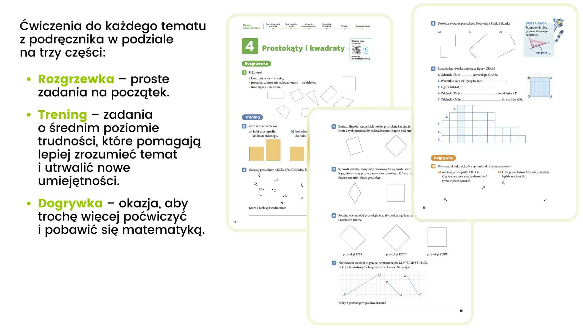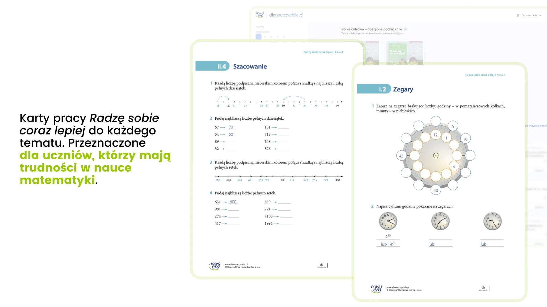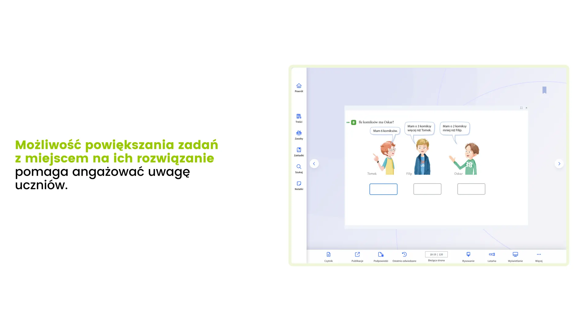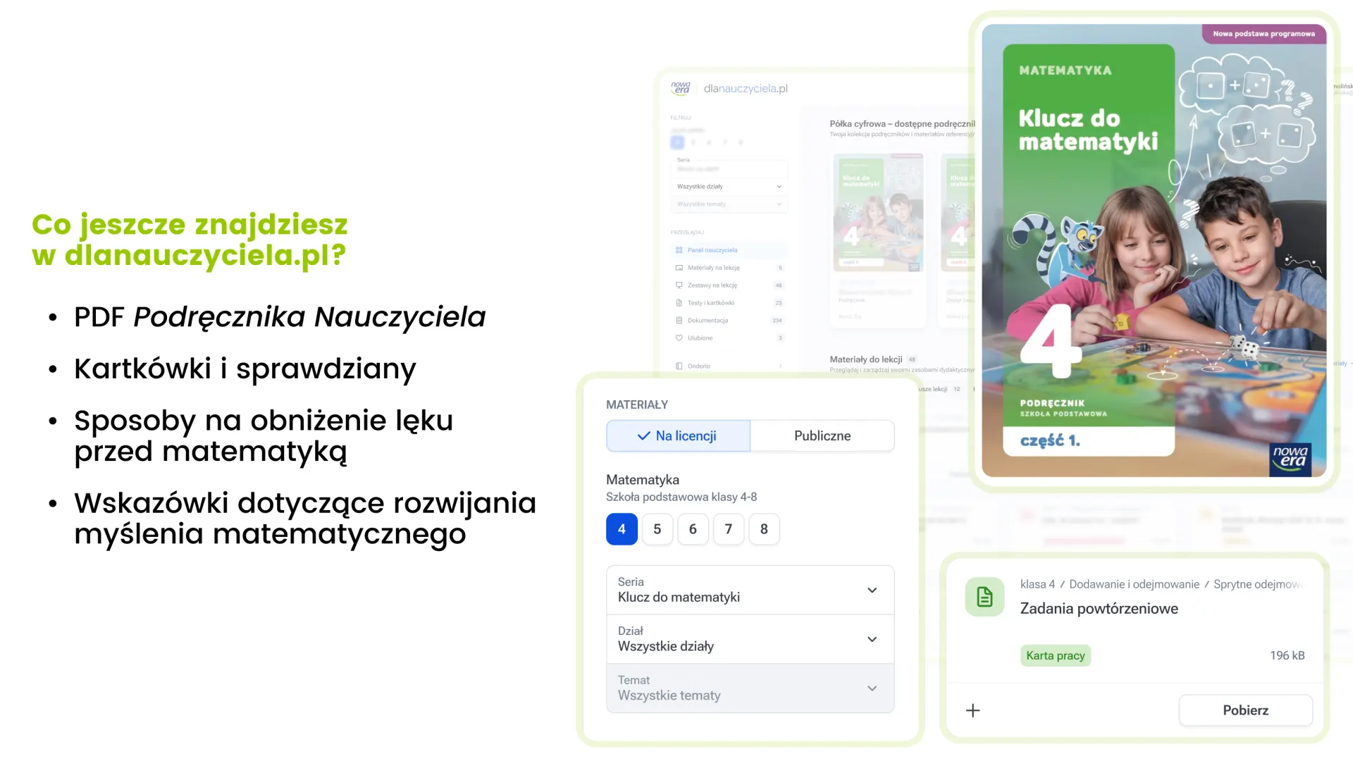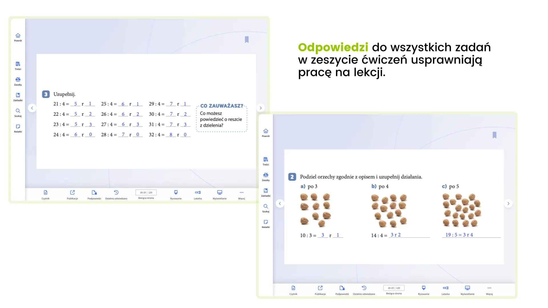 Uczniowie najpierw poznają na przykładach nowe techniki działania, a następnie samodzielnie mogą je przećwiczyć na podobnych zadaniach, we własnym tempie. Stopniowanie trudności i jasne wskazówki sprawiają, że każdy może osiągnąć sukces na miarę swoich możliwości.