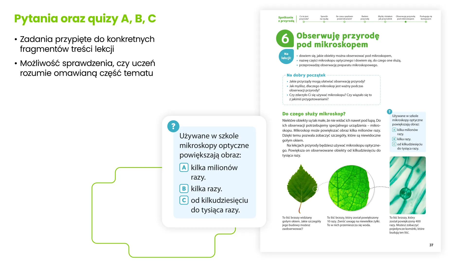 Zachęca do samodzielnego poznawania przyrody, angażuje na lekcji, pobudza do działania – to bliska współczesnym uczniom seria, która uczy zadawać pytania i wyciągać wnioski.