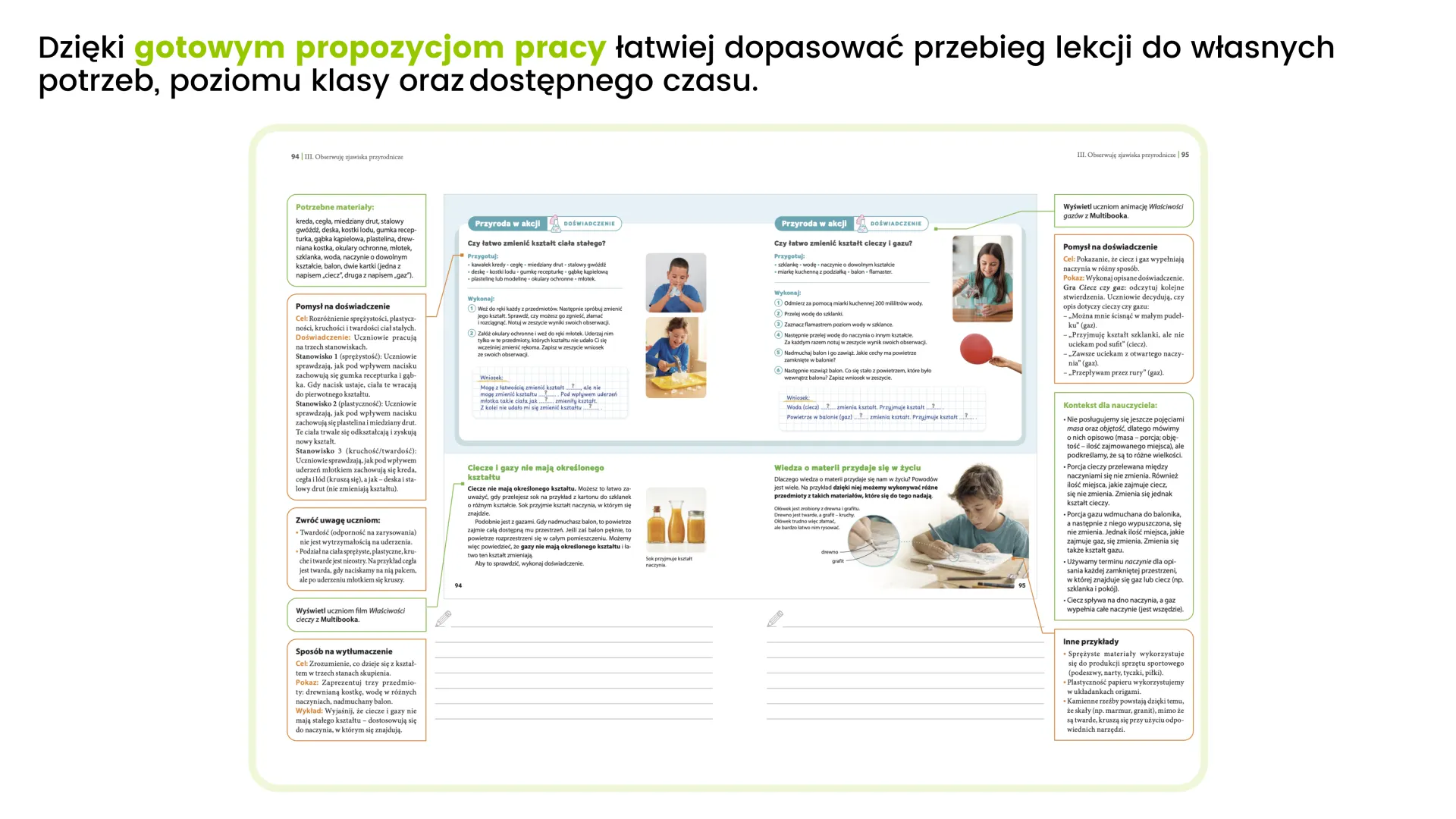 Obserwacje i proste doświadczenia pozwalają uczniom zobaczyć omawiane zjawisko na żywo. Zmieniają teorię w realne doświadczenie, które jest fundamentem dociekania naukowego.