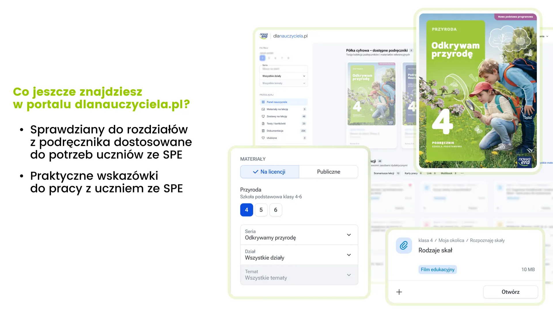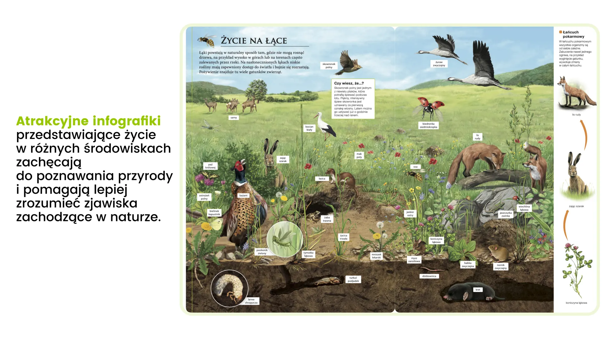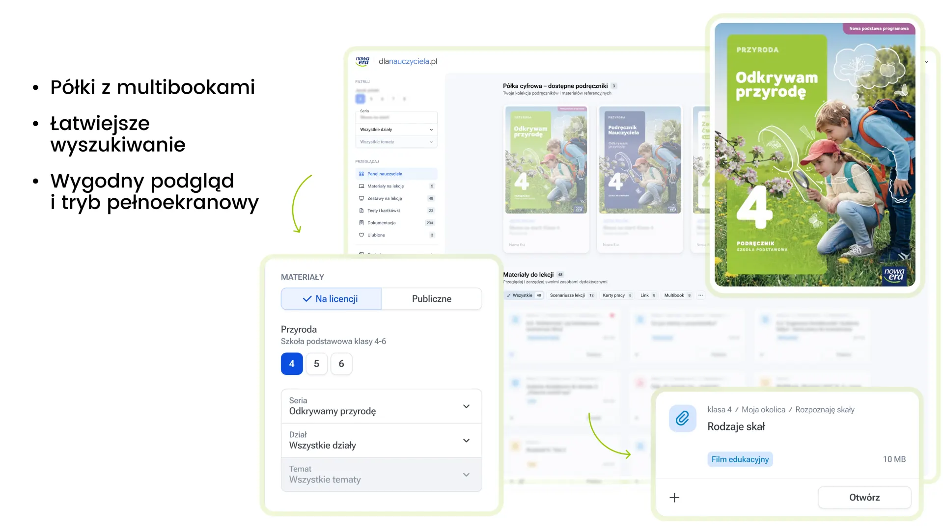 Seria „Odkrywam przyrodę” wzbudza w uczniach zainteresowanie ich otoczeniem, które przeradza się w realne zaangażowanie w środowisko. Uczniowie nie tylko słuchają, lecz zaczynają pytać, łączyć fakty i samodzielnie szukać wyjaśnień, dzięki czemu szybciej rozumieją i lepiej zapamiętują nowe treści. Atrakcyjne infografiki prowadzą ich do intrygujących odkryć.