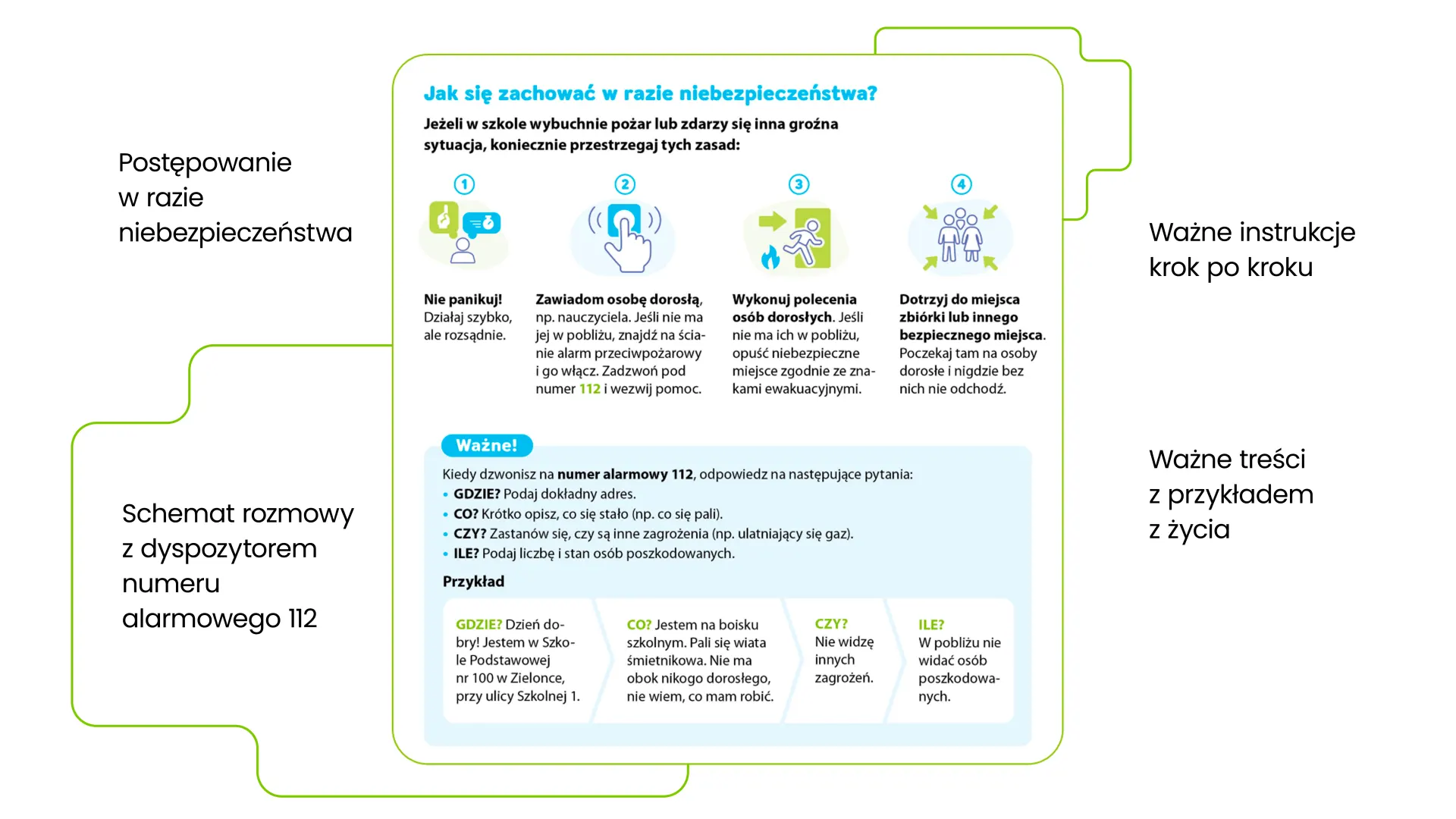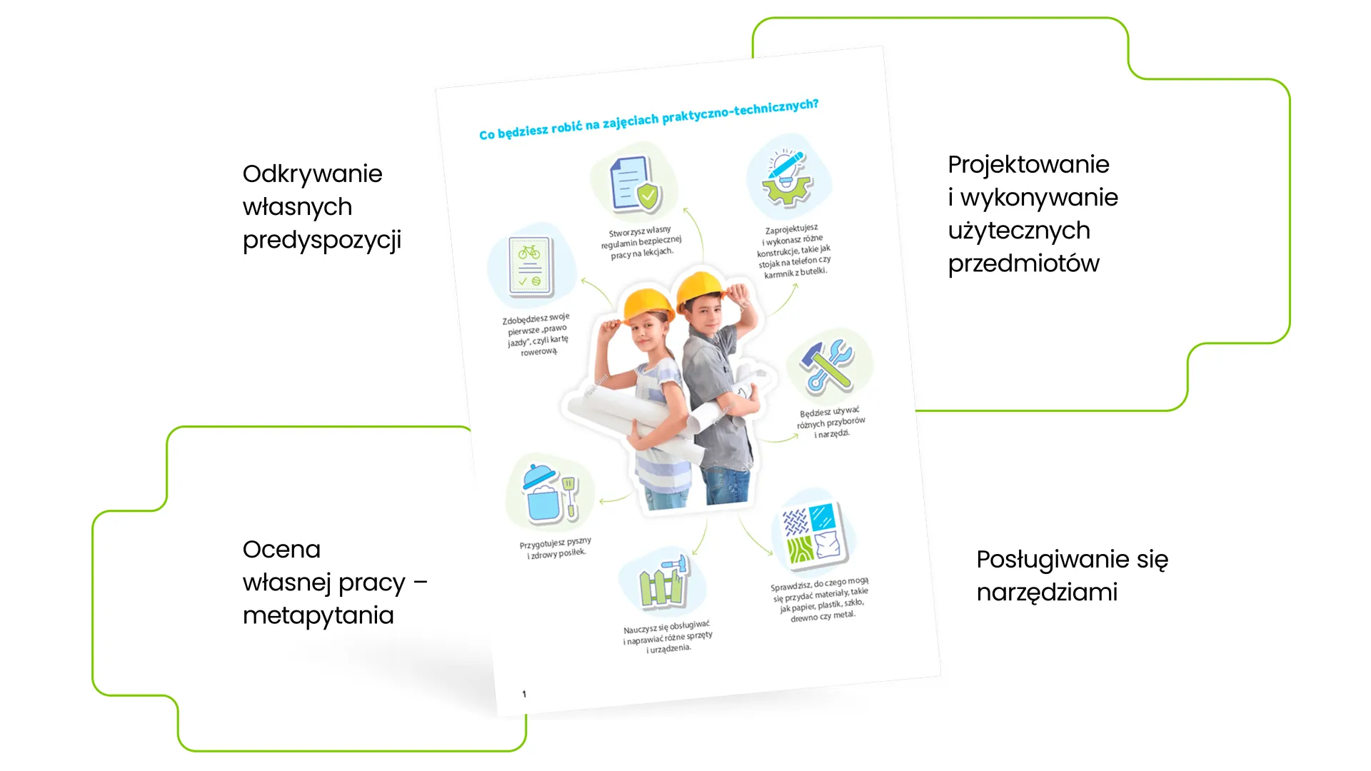 Uczniowie uczą się planować i realizować własne projekty. Rozwijają przydatne umiejętności manualne, bezpiecznie posługują się narzędziami oraz wykonują użyteczne przedmioty. Poznają zasady postępowania w sytuacjach zagrożenia oraz ćwiczą schemat rozmowy z dyspozytorem numeru alarmowego 112.