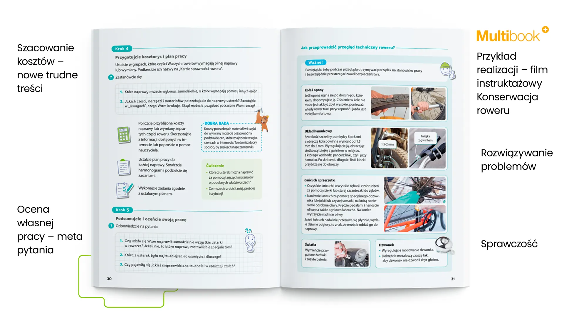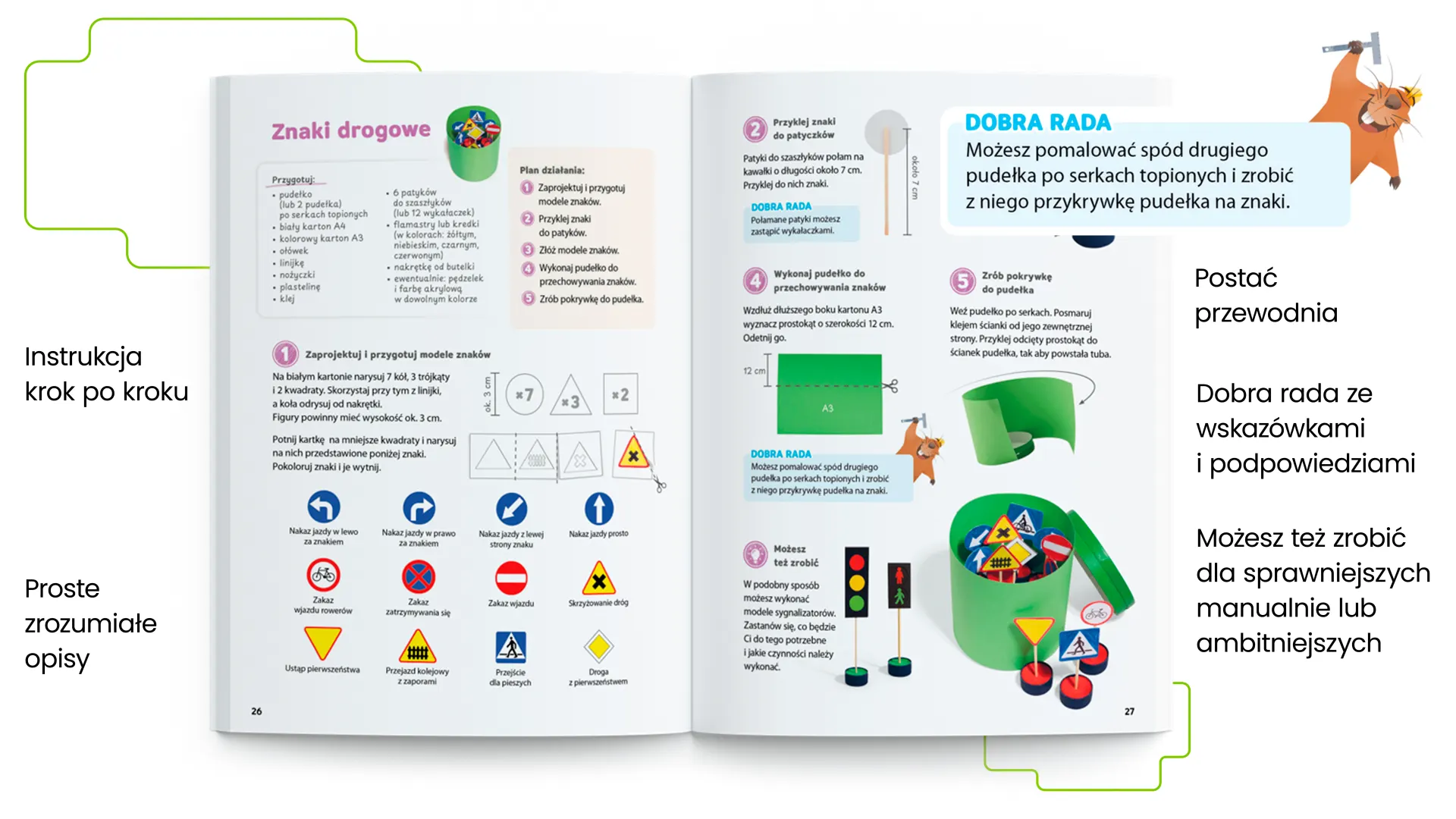 Rozmaite formy pracy oraz zadania o różnym poziomie trudności pozwalają dopasować poziom wyzwań do możliwości uczniów – tak, by każdy mógł odnieść sukces. Instrukcje krok po kroku wspierają tych, którzy potrzebują jasnych wskazówek, a dodatkowe zadania otwierają przestrzeń dla bardziej ambitnych i sprawnych manualnie.
