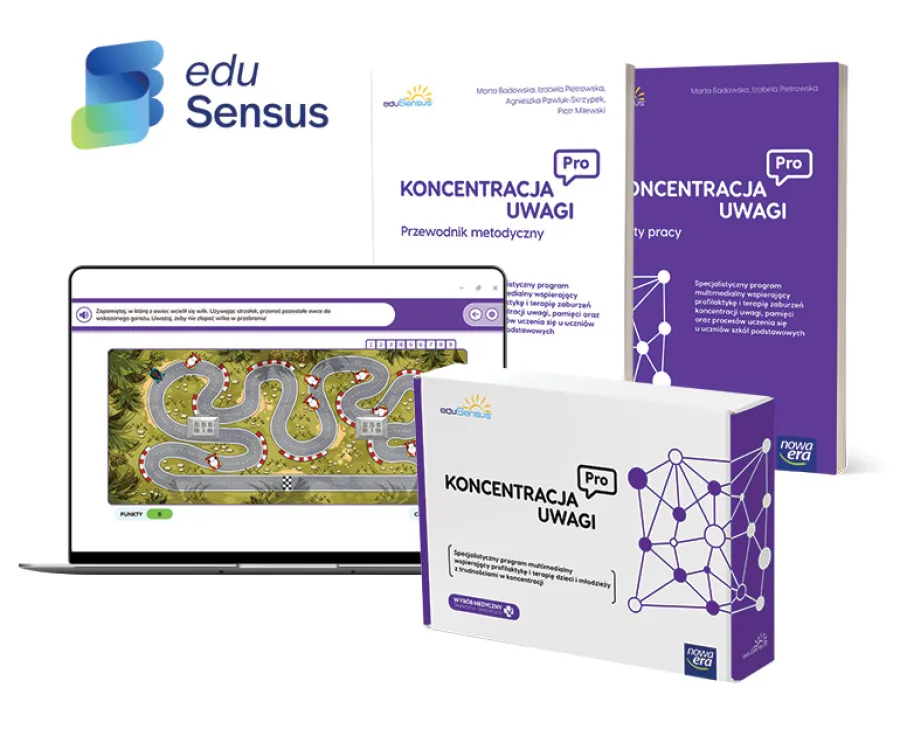 Przedstawiamy najnowszy tytuł eduSensus – specjalistyczny program zawierający gry multimedialne przeznaczone do terapii i profilaktyki zaburzeń koncentracji uwagi, pamięci oraz procesów uczenia się u uczniów w wieku 6–15 lat.