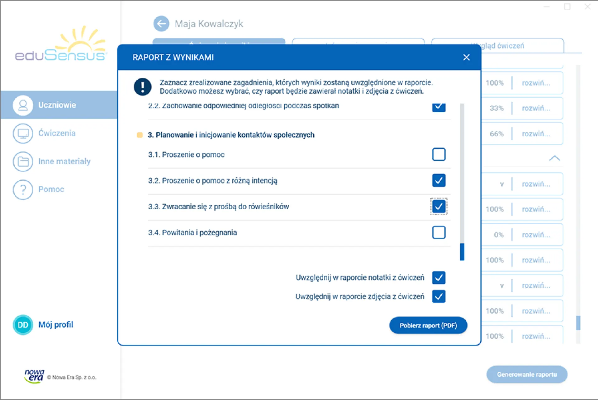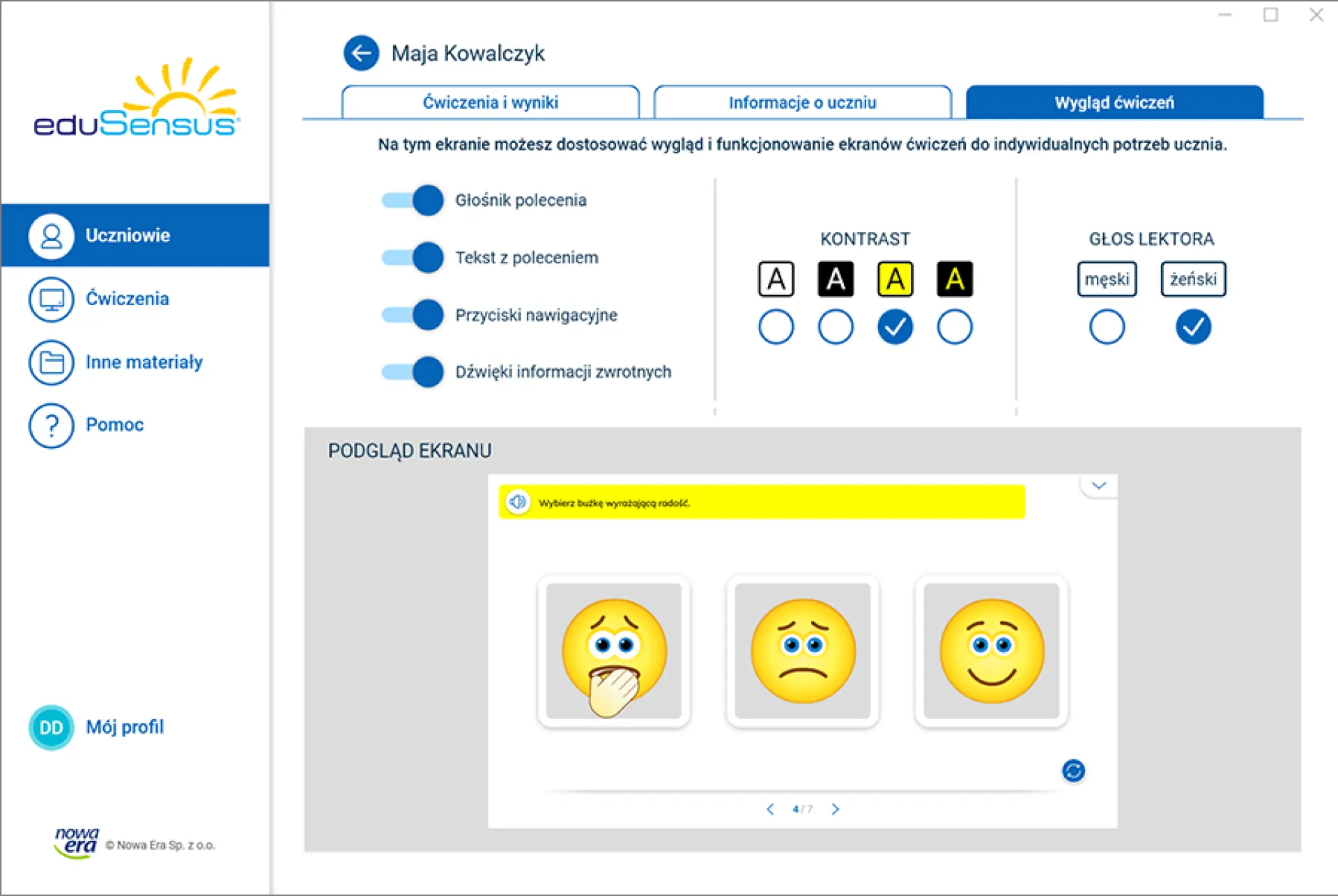 Dodatkowo, ważną częścią programu jest aplikacja nauczyciela i terapeuty, która pozwala na: