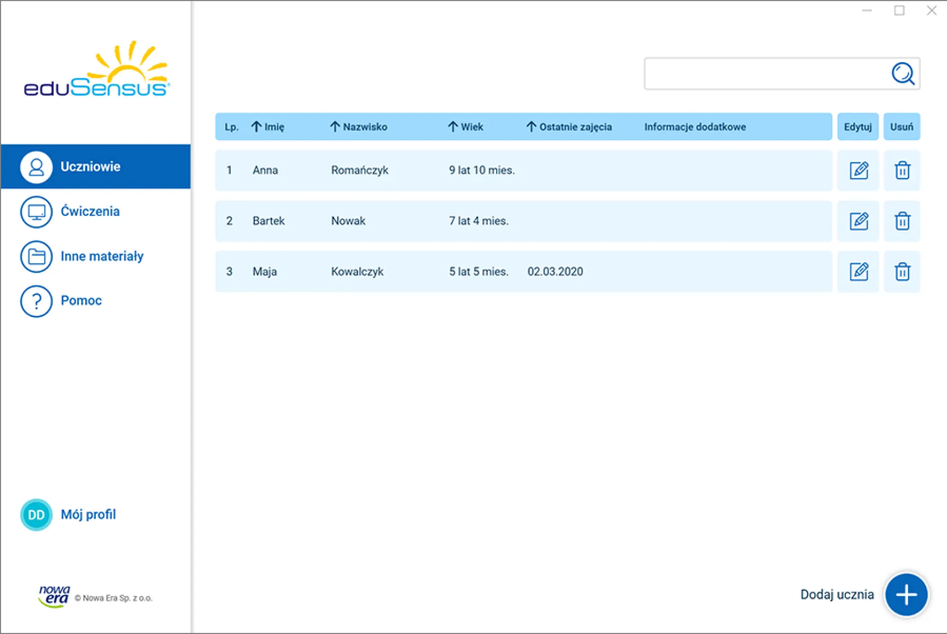 Aplikację można uruchomić jedynie na komputerze osoby prowadzącej zajęcia. Dane uczniów i pacjentów są niedostępne dla innych uczestników zajęć.
