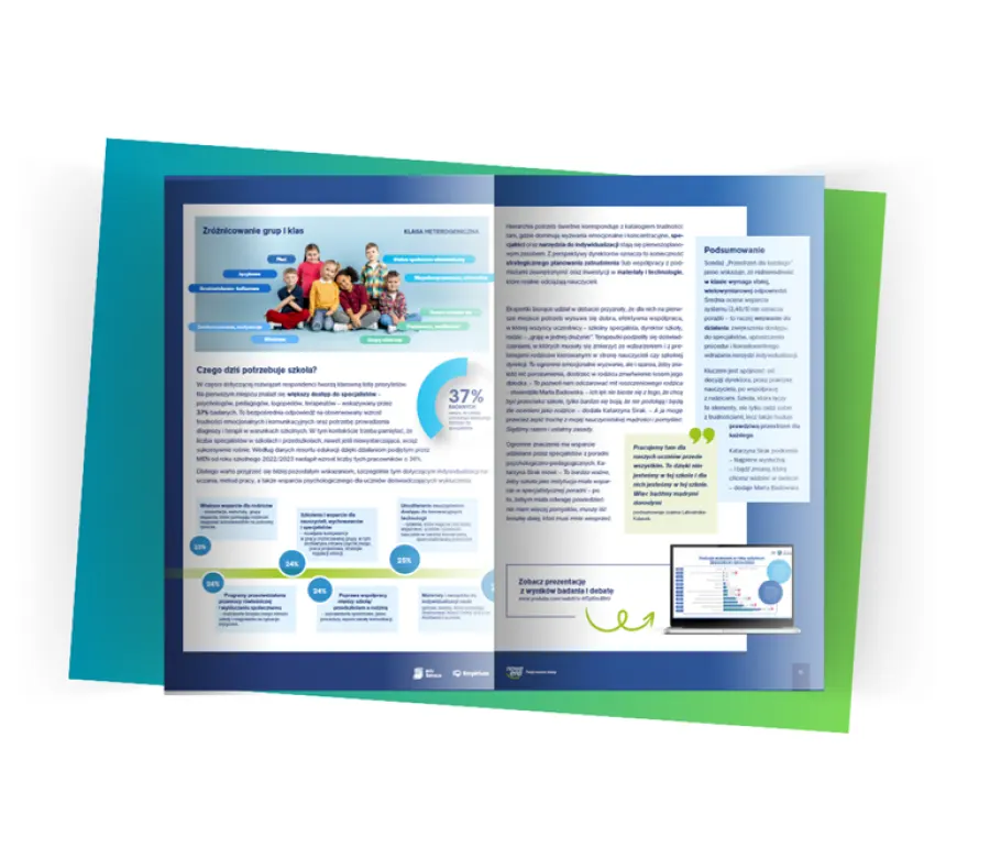Pobierz bezpłatną publikację i odkryj najnowszy raport z badania Nowej Ery, w którym aż 22 000 respondentów podzieliło się swoimi doświadczeniami dotyczącymi edukacji włączającej i pracy ze zróżnicowaną grupą uczniów.