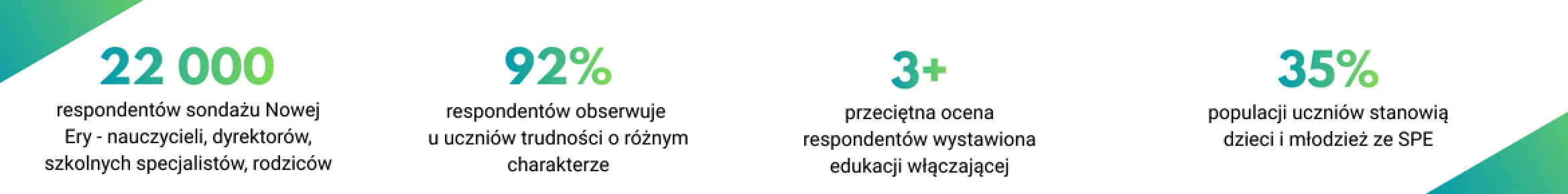 - Otrzymasz pełny raport z badania Nowej Ery przeprowadzonego wśród 22 000 respondentów — największego tego typu badania o edukacji włączającej i pracy ze zróżnicowaną grupą.