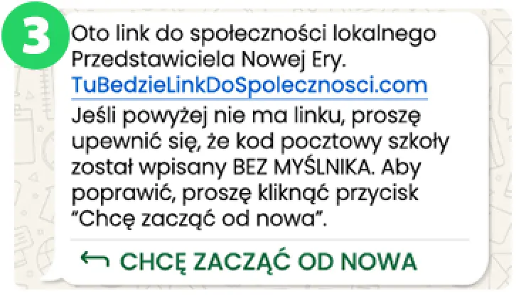 W odpowiedzi otrzymasz link do swojej społeczności na WhatsAppie. Kliknij i dołącz.